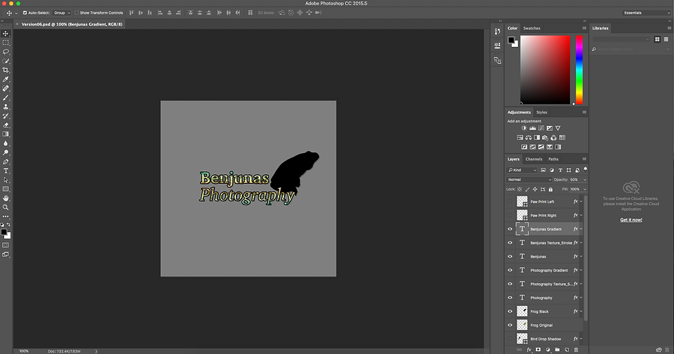 The only difference between version two and version three of the logos are the colors of the "Benjunas Photography" text. I wanted to give Paul a variation in color with the hope that he'd be attracted to one certain color scheme and we'd go from there. This color scheme has a more wood / moss look to it.